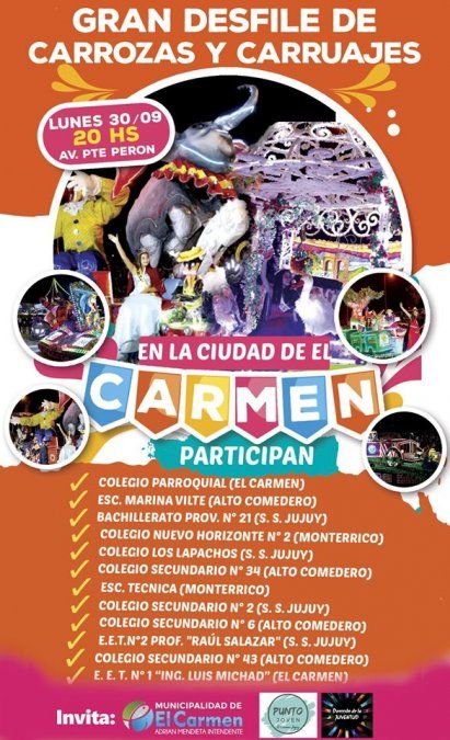 Ayer domingo fue el turno de Palpalá y este lunes es momento de la ciudad de El Carmen. La cita será a partir de las 20.00 hs. en la Avenida Presidente Perón de dicha ciudad.