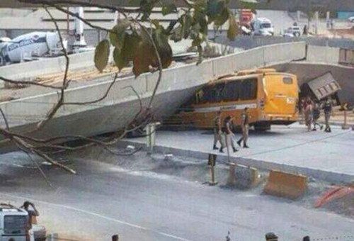 Un viaducto recién inaugurado cayó sobre una avenida y aplastó un colectivo, a pocos kilómetros de donde concentra la selección argentina en Belo Horizonte. Otras diez personas sufrieron heridas.