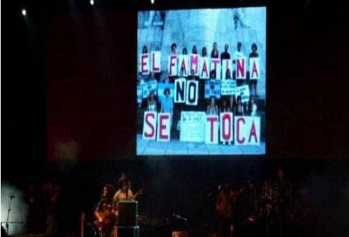Canal 7 cortó su transmisión cuando el popular cantante se manifestó en contra de la megaminería. Usaba como fondo una imagen que decía "El Famatina no se toca".