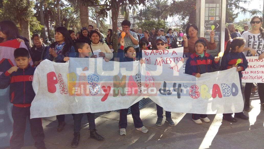 Los profesores de los jardines y escuela de CEDEMS, que este lunes continuaban con la permanencia en el edificio escolar, movilizaron hasta casa de gobierno en reclamo de una deuda salarial arrastrada desde marzo.