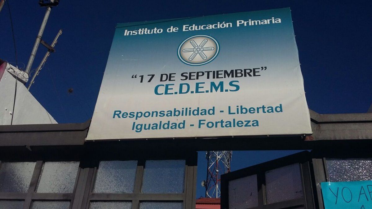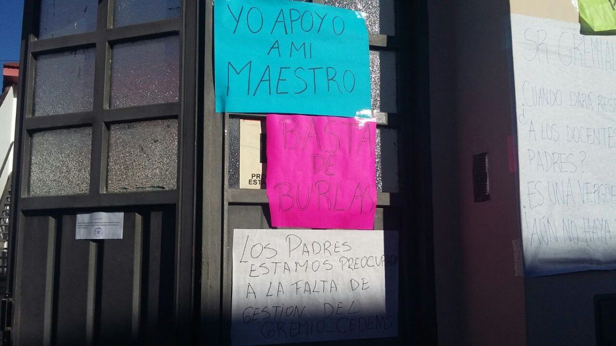 Los responsables de alumnos del Instituto de Educación Primaria del CEDEMS se reunieron en la institución con carteles de “apoyo al maestro” y decidieron que sus hijos no asistan a clases durante la jornada.