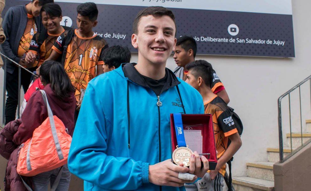 El jugador de vóley que recientemente se colgó la medalla de bronce en el Mundial de Túnez junto a la selección Argentina sub 19, fue distinguido por el Concejo Deliberante y la Municipalidad capitalina.