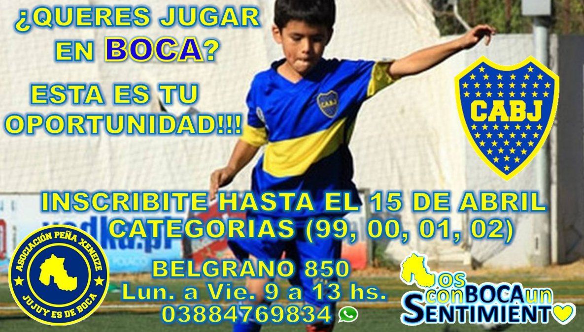 El Club Atlético Boca Juniors busca talentos jujeños para incrementar su cantera. La preselección se llevará a cabo el próximo domingo 17 de abril en la cancha del Club General Lavalle. El "Xeneize" busca categorías 1999/00/01 y 02.