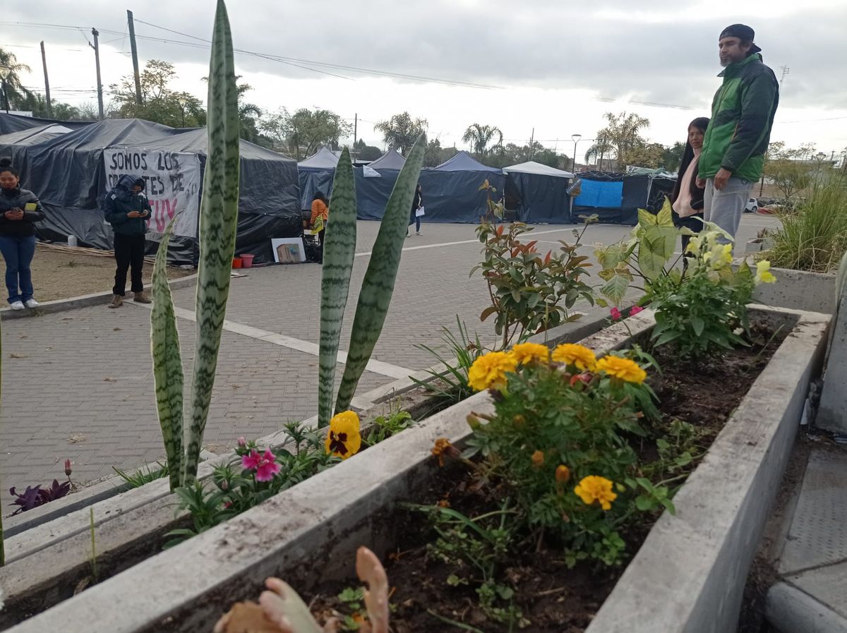 Las grandes macetas de cemento del Ministerio de Educación ya no están llenas de malezas, ahora fueron reemplazadas por uno y varios tipos de pigmentos de flores. Este cambio fue gracias a la sensibilidad de los docentes del nivel primario que, desde hace 53 días, se encuentran en permanencia en las afueras del edificio. Además de esta lucha que mantienen por un salario digno, quisieron que se dé a conocer que protestan con el ejemplo, ya que no sólo embellecieron el lugar, sino que también realizan clases de teatro para niños, jóvenes y adultos, como también festivales.