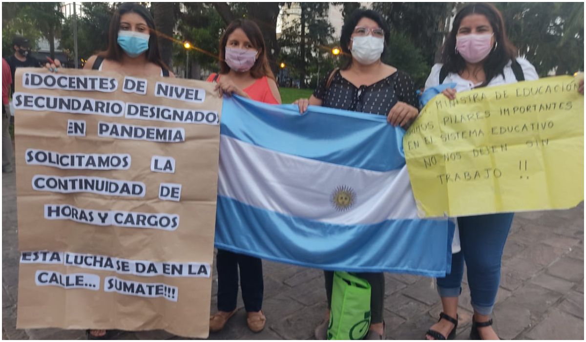 Los profesores de Nivel Secundario de las distintas regiones de la Provincia, designados en horas y cargos en el Ciclo Lectivo 2021 en un contexto de Pandemia, se movilizaron a Casa de Gobierno ante la falta de respuesta por la continuidad de la fuente laboral.