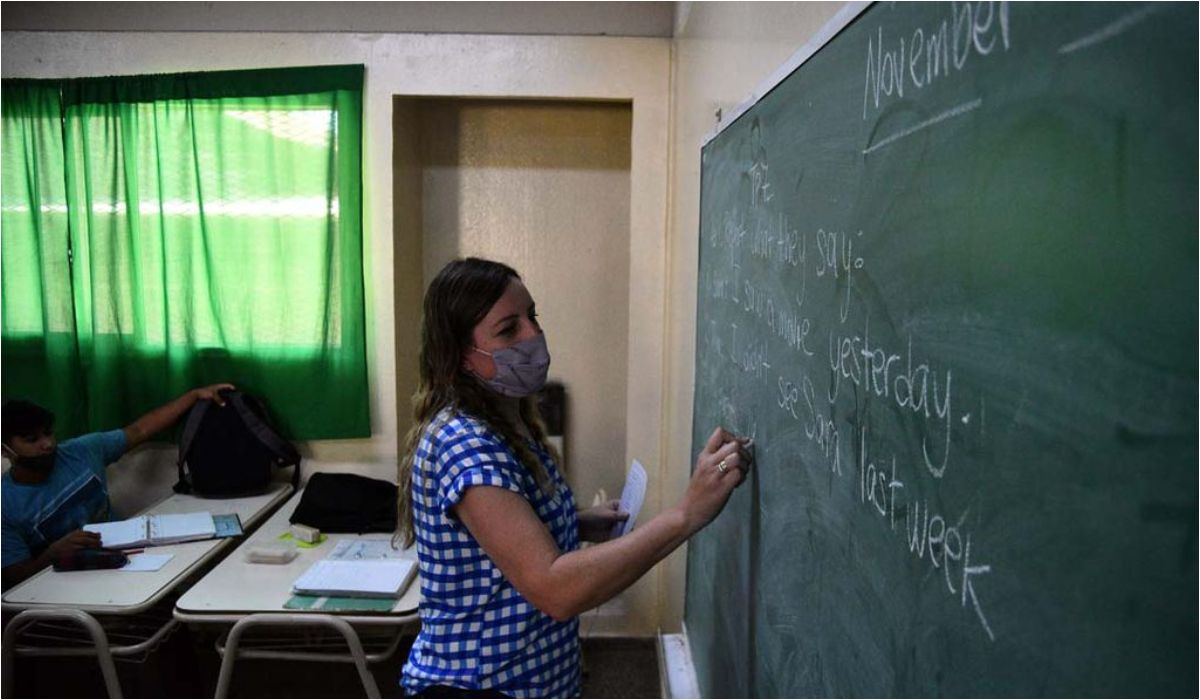 El anuncio llegó tras una nueva reunión paritaria con los cinco gremios docentes con representación nacional que firmaron el acta por el cual se resolvió adelantar los tramos de aumento salarial para los docentes.