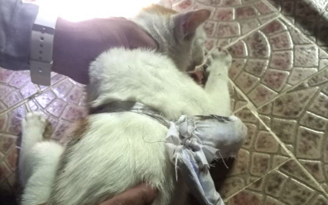 En el mensaje la fiscalía añade dos fotos, en una de las cuales se ven varios envoltorios con presunto polvo blanco en su interior, mientras que en la otra aparece un gato, también blanco, con un trozo de tela amarrado a su cuerpo. El gato fue entregado a las autoridades y trasladado a una fundación protectora de animales.