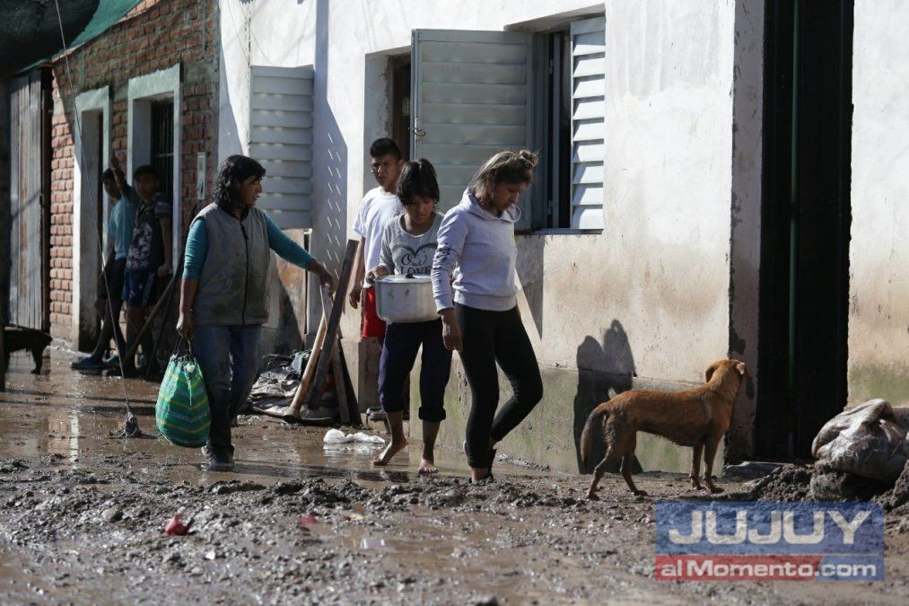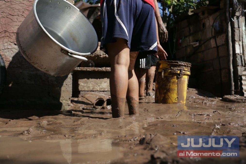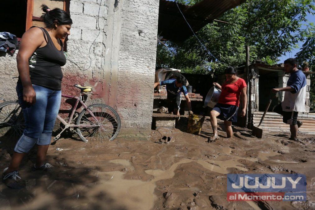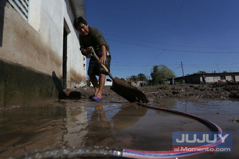 Teniendo en cuenta que la ayuda por parte de Desarrollo Humano está demorando en llegar y al mejorar temporariamente las condiciones, algunas familias se encuentran tratando de limpiar sus viviendas que fueron afectadas por la abundante cantidad de agua y el barro.