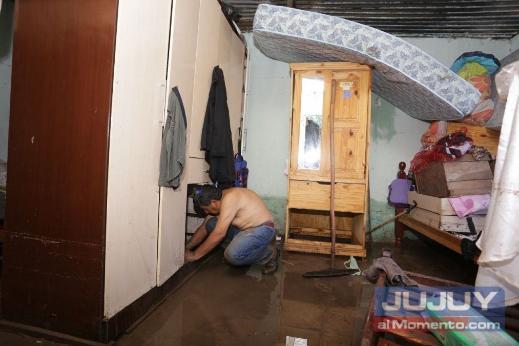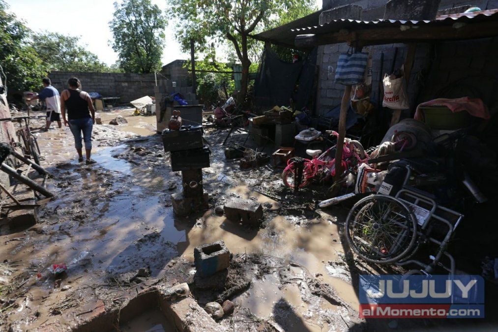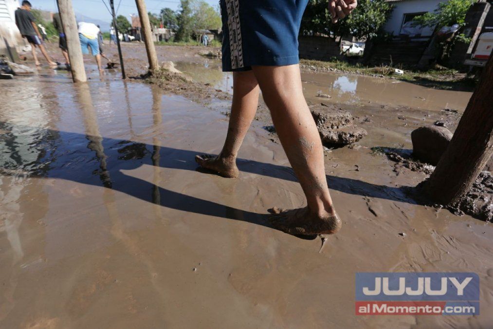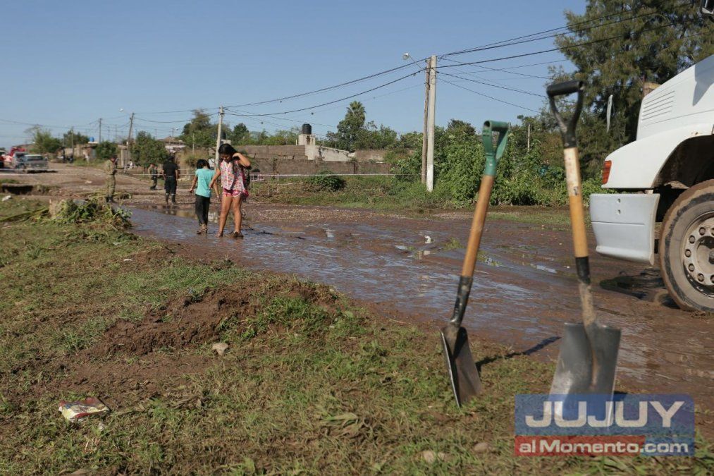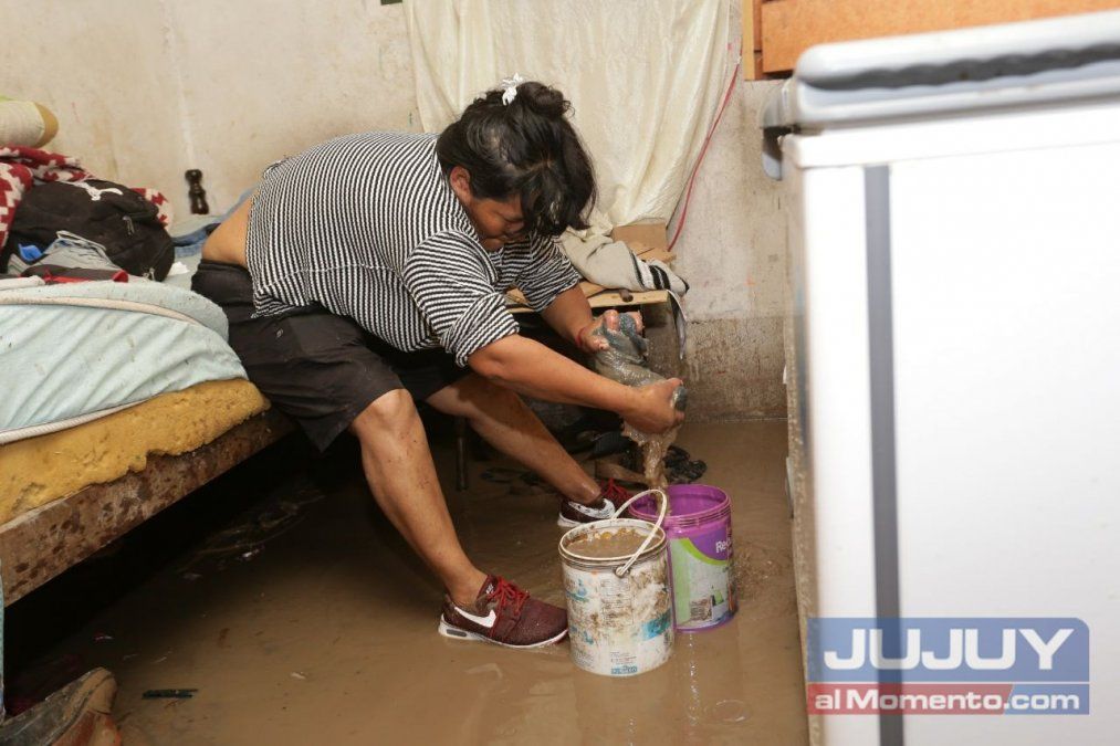 Teniendo en cuenta que la ayuda por parte de Desarrollo Humano está demorando en llegar y al mejorar temporariamente las condiciones, algunas familias se encuentran tratando de limpiar sus viviendas que fueron afectadas por la abundante cantidad de agua y el barro.
