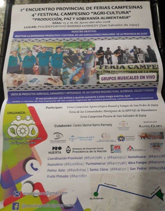 Desde el Movimiento Campesino Indígena Pucará en conjunto con la Red de trabajo solidario de Coronel Arias informaron que el próximo 15 y 16 de junio en el Polideportivo del Barrio Kennedy (calles Esnaloa y Pte. Peron), tendrá lugar una mega feria campesina con productores de las cuatro regiones.