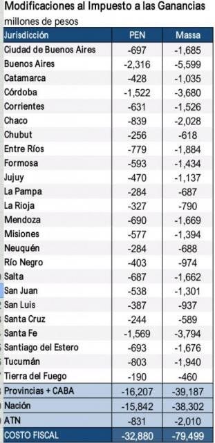 El costo fiscal por la modificación del impuesto a las ganancias, que se aprobó hoy en la Cámara Baja, tendría gran incidencia en la recaudación de las provincias. En el caso de Jujuy, la pérdida llegaría a los 1.137 millones, según el proyecto de Sergio Massa y por el proyecto del PEN, llegaría a 470 millones.
