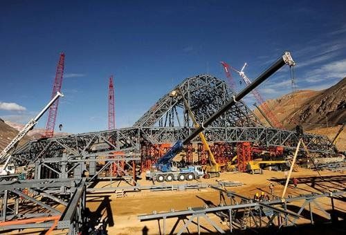 El emprendimiento, un desafío constructivo único en el mundo que se desarrolla en plena cordillera argentino-chilena a casi 5.000 metros sobre el nivel del mar, utiliza ingeniería de avanzada que incluye verdaderas mega-estructuras y genera más de 11.000 puestos de trabajo.