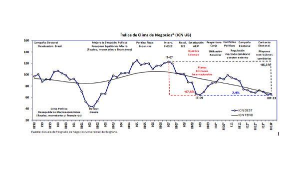 El Índice de Clima de Negocios (ICN) se mantiene en niveles que indican bajos incentivos para la inversión por parte del sector privado. En términos anuales, la caída fue de un 3,3%, acumulando 10 trimestres consecutivos de variación negativa.
