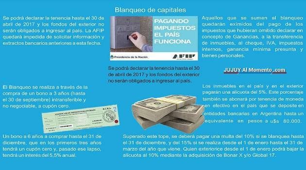 El Congreso deberá aprobar este blanqueo de capitales, que será en pesos y en dólares, con el que el Gobierno aspira a captar US$ 50.000 millones. Desde Jujuy al Momento te contamos de qué se trata y cómo se realizará.