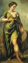 Un joven desnudo señala con el dedo un reloj solar, nos dar a entender que el sol empieza a bajar y la antorcha encendida es símbolo de calores de la estación como sucede en el otro hemisferio. Aquí, días otoñales y luminosos.