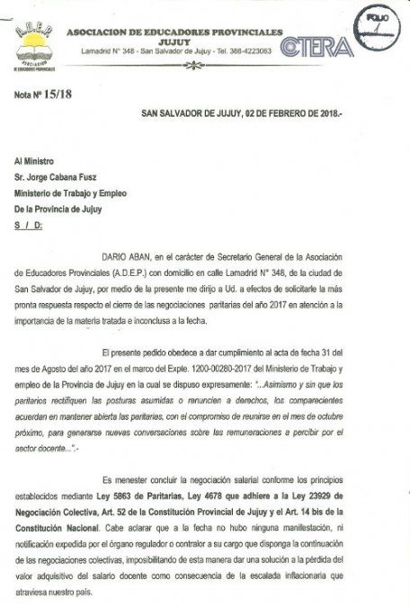 Afirman que el gobierno no los recibe ni los convoca tanto en lo que respecta a las paritarias 2018 como el cierre de la negociación salarial del 2017.