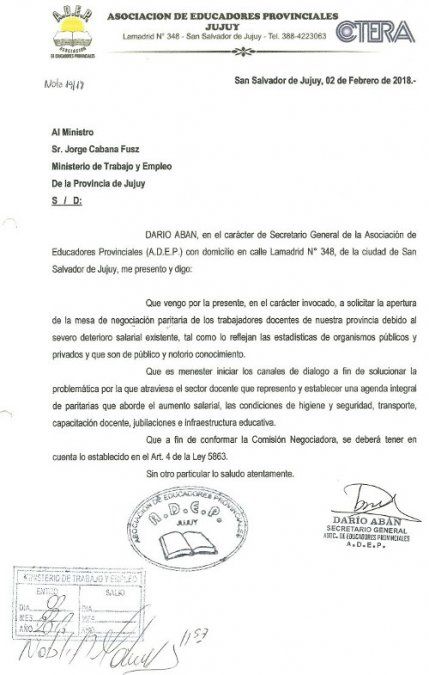 Actualmente, el sector está solicitando la apertura de las paritarias 2018 debido "a un severo deterioro salarial conforme a lo que reflejan las estadísticas de organismos públicos y privados".