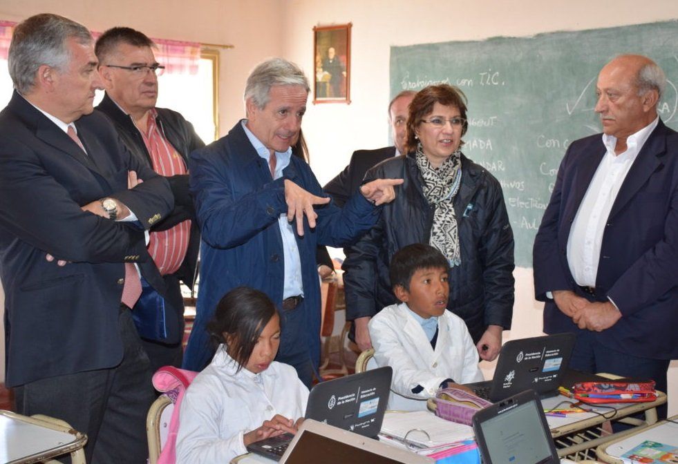 Junto al ministro de Modernización de la Nación Andrés Ibarra, Isolda Calsina y Gerardo Morales visitaron la Escuela N° 271 de La Ciénega, establecimiento en el que se amplió a la capacidad de internet a 4 megas, a través del satélite ARSAT 2.