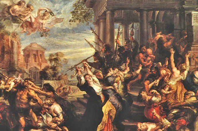 Según San Mateo, Herodes el Grande, obsesionado con el poder y por el temor a perderlo, al enterarse que había nacido un nuevo rey ordenó que le dieran muerte inmediatamente.