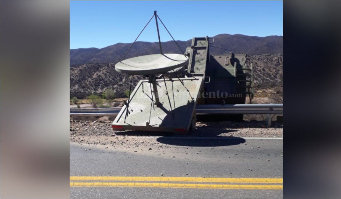 - Un camión del Ejército casi cae al vacío, la antena que llevaba quedó atascada en el guardarrail e impidió un siniestro mayor.