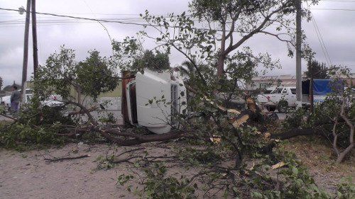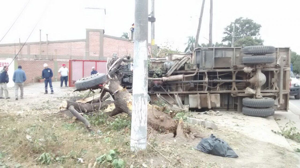 Un camión del área de Vialidad, cuyo conductor se encontraba en estado de ebriedad, perdió el control tras chocar contra el cordón cuneta, tras lo cual cruzó de carril impactó contra un árbol y volcó bruscamente cayendo sobre uno de sus laterales.