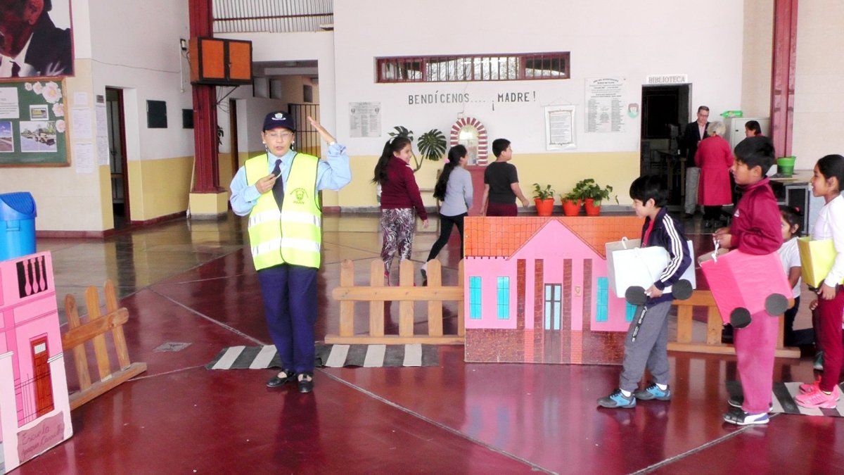 Las capacitadoras del área vial dieron una charla sobre la conducta del peatón en la vía pública, también enseñaron el respeto a las leyes de tránsito a través de un parque temático.