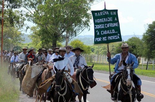 Al mediodía almorzarán en Los Alisos y de allí seguirán su marcha rumbo hacia El Carmen. A las 18 estarán llegando a la plaza central de El Carmen en donde se descubrirá la escultura de Jorge Cafrune. Posteriormente se va a realizar el tradicional desfile gaucho, con representantes de las distintas agrupaciones de la provincia.