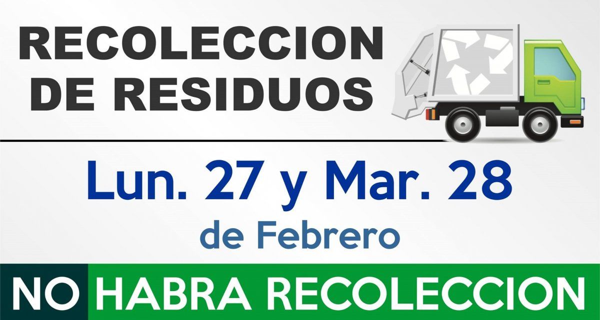 En la localidad de El Carmen confirmaron que no habrá recolección de residuos los días lunes 27 y martes 28 de febrero, feriados de carnaval.
