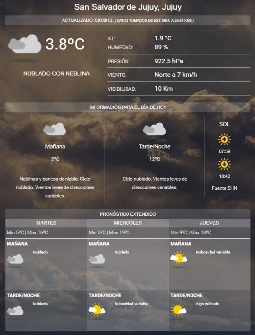En la ciudad fronteriza el servicio meteorológico indica buen tiempo para toda la semana, con el cielo despejado y sin probabilidad de lluvias registradas. La temperatura rondará entre los -3° y 10°.
