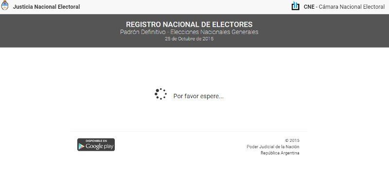 La página web http://www.padron.gob.ar/ donde supuestamente se debe consultar el padrón electoral, no está disponible. Al intentar acceder a la página, directamente o vía otros enlaces, se hace imposible en cualquier horario.