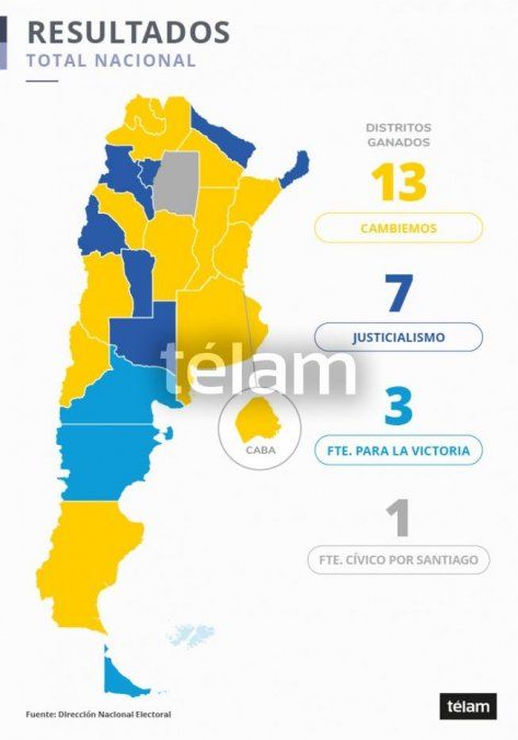 El Frente Cambiemos se impuso en las elecciones legislativas de este domingo con claros triunfos en 12 provincias y una victoria ajustada en La Rioja.