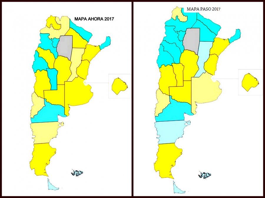 Desde las elecciones PASO del 13 de agosto del corriente año, el Frente Cambiemos ha conseguido ampliar Jujuy , Salta, Chaco, Corrientes, Santa Fe, Entre Rios, Provincia de Buenos Aires, Ciudad Autonoma de Buenos Aires , Cordoba , La Rioja, La Pampa , Mendoza , Neuquen , Chubut , Santa Cruz.
