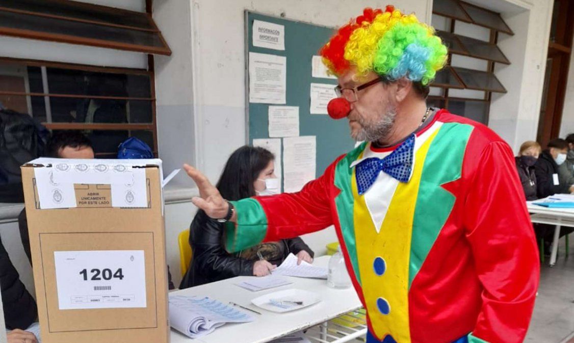 El hombre sufragó en la escuela N° 34 de Moreno con la cara pintada y su clásico traje. En una imagen que subió a las redes sociales se lo puede ver en el momento exacto en el que mete el sobre en la urna.