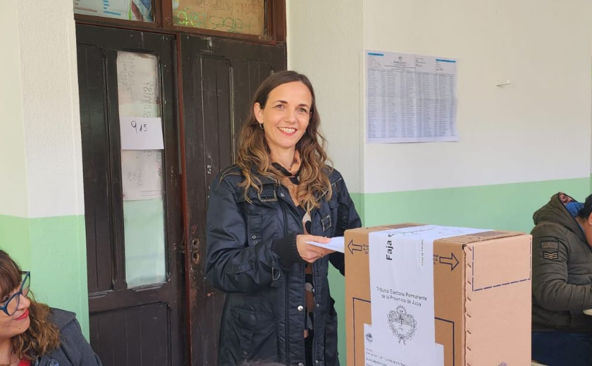 La candidata a gobernadora por el partido VIA + Libertarios, Cecilia García, votó en la Escuela de Comercio José Manuel de Estrada de Perico.