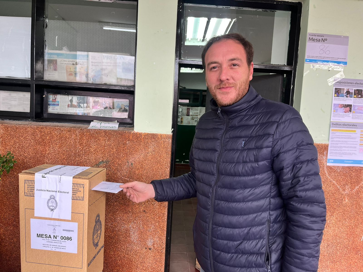 Emanuel Martín Palimieri, precandidato a parlamentario del MERCOSUR de Unidos por la Patria, votó en la Escuela 391 de barrio Ciudad de Nieva esperando que la ciudadanía “venga a emitir su voto, que no se quede en casa. Hoy es el día para expresar una disconformidad más allá de que el gobierno provincial sacó el transporte y se hayan hecho cosas para que no puedan votar”.