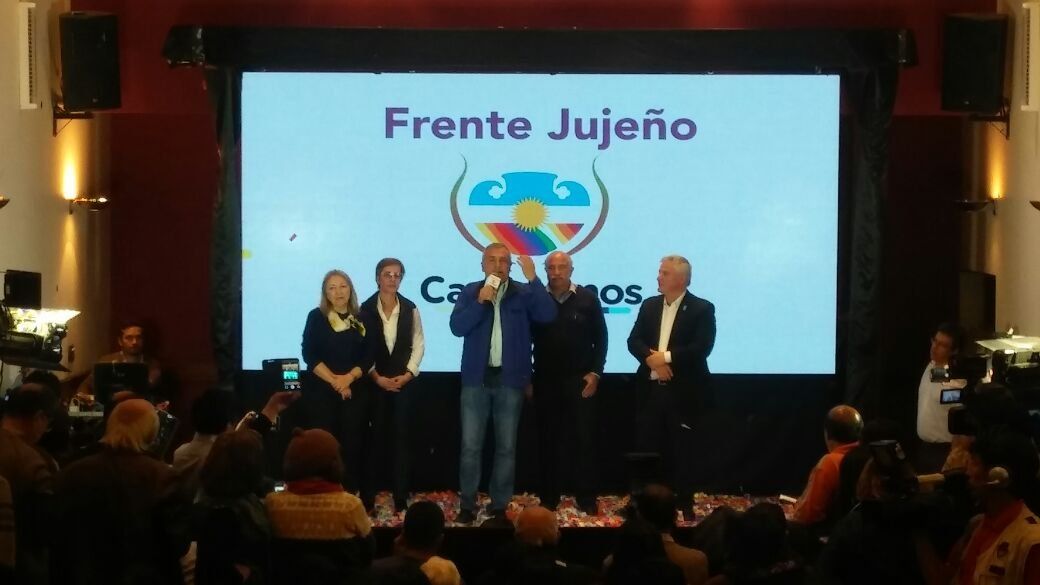 Rodeado de los candidatos ganadores, Mario Fiad, Gabriela Burgos y Osmar Monaldi, junto al vicegobernador Carlos Haquim, líder del Frente Renovador en Jujuy, insistió: “el resultado de esta elección da cuenta de que no hay marcha atrás”.