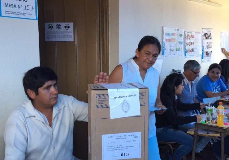 Milagro Sala emitió pasado el mediodía su voto en la Escuela Oscar Orías del Barrio Mariano Moreno, Mesa: 157. Llegó como una ciudadana común e inmediatamente se dispuso hace fila y esperar emitir su voto.