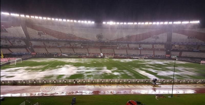 La lluvia llegó con furia y para quedarse. A pocos minutos para el inicio del partido entre Argentina y Brasil el Monumental estaba inundado. Por el anillo del estadio de River el rumor de la postergación empezó a correr dos horas antes de la hora pactada para el clásico sudamericano por la tercera fecha de las Eliminatorias Sudamericanas.