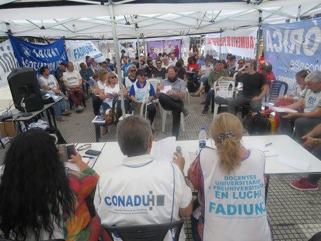 Este miércoles los sindicalistas y el gobierno reanudaron las negociaciones en torno a una mejora salarial. El gobierno les ofreció la liquidación del 5% en blanco sobre todos los conceptos a partir de marzo no retroactiva a febrero, paritaria abierta, próxima reunión en junio, y el aumento de asignación por hijo sin precisar monto.