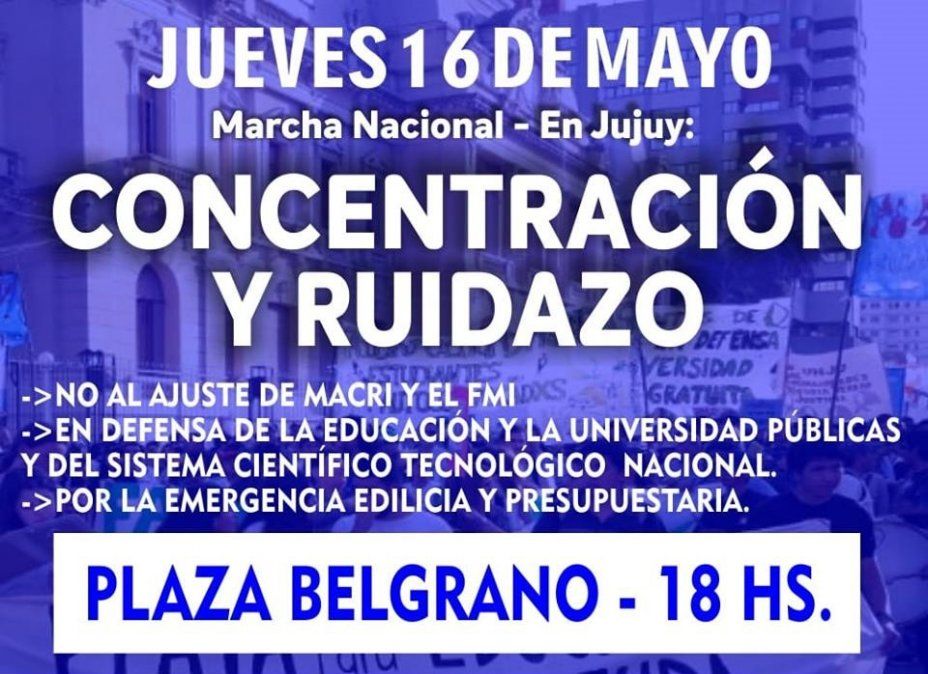 Como se había anticipado, los docentes universitarios nucleados en ADIUNJu llevarán adelante medidas de fuerza este 16 y 17 de mayo en contra de las medidas económicas de los gobiernos nacional y provincial.