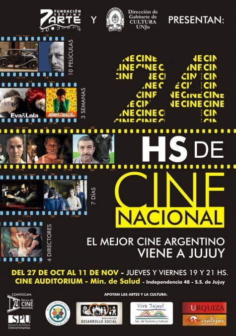 La Dirección de Gabinete de Cultura de la Universidad Nacional de Jujuy y la Fundación Séptimo Arte para el Cine Argentino y las Artes, invitan a las jornadas de 24 horas de Cine Nacional, que se inicia hoy en el Cine Auditorium del Ministerio de Salud, en Avenida Italia esquina Independencia de nuestra ciudad.