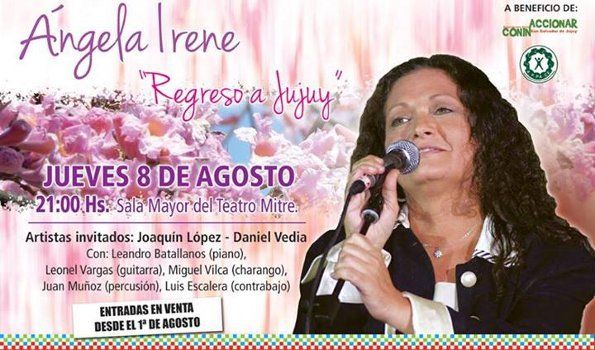 Al respecto, Ángela Irene invitó a la comunidad jujeña a participar del espectáculo folklórico en el que estará acompañada por músicos jujeños que compartirán el escenario, como Joaquín López y Daniel Vedia.