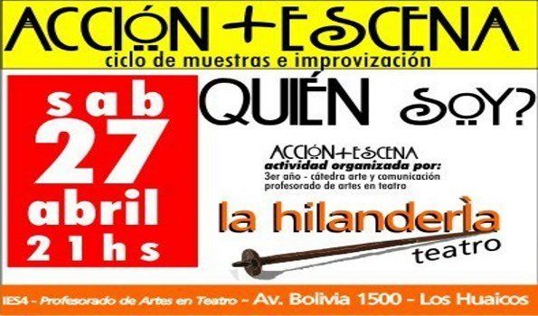 “Queremos empezar a trabajar la sala y decidimos comenzar un ciclo que se llama ‘Acción-Escena, Ciclo de muestras e Improvisación’. Este sábado se comienza a trabajar teniendo como eje la temática ‘Quien soy’, que tiene que ver con la persona y con un mirar hacia adentro de uno mismo”, explicó Soraire.