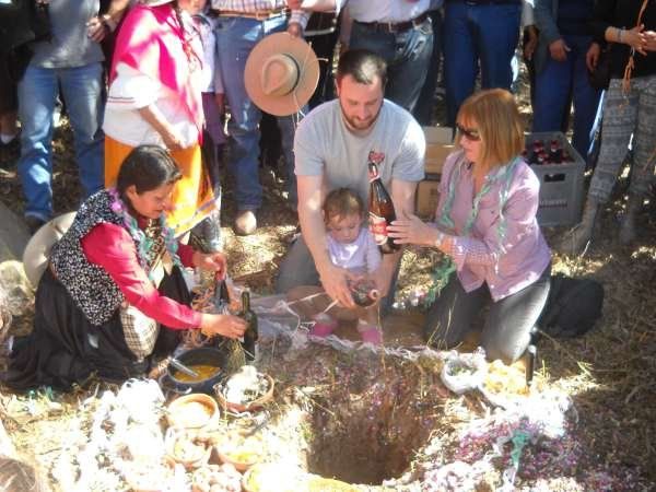 Antes de dar comienzo al espectáculo, a un costado del escenario se realizaron las ofrendas a la Pacha Mama en su mes, acto del que participaron los presentes. Papas, maíz, chorizo, locro, vino, cerveza, fueron algunos de los alimentos que se ofrecieron a la madre tierra en agradecimiento por todo lo que ella nos da durante el año.