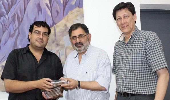 Pablo Santillán, voz del grupo musical, recibió de manos del intendente Jorge, ejemplares del CD, en un acto concretado en el Edificio Municipal “Doctor Raúl Alfonsín” durante la mañana del miércoles.