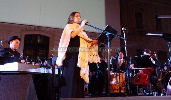 En la noche jujeña, la artista que interpretara el papel de Evita en un musical en Londres, cantó temas como “No llores por mí Argentina”, “Flores”, “Yo vengo a ofrecer mi corazón”, “Himno de mi corazón” y el Himno Nacional Argentino, acompañada por la Orquesta Infanto Juvenil, y sus propios músicos.