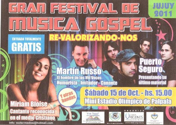 Desde las 15 se desarrollará el Gran Festival de Música Gospel, en el Mini Estadio Olímpico de Palpalá. Transmite Canal 2.