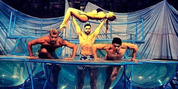 A horas del espectáculo, Chato Prada compartió un video en el que se va a Pampita entre las aguas, y ella hizo lo mismo con una foto en Instagram mostrando uno de los trucos.