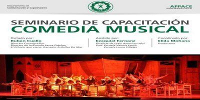 APPACE invita a participar, desde el 11 al 13 de agosto, de un seminario de perfeccionamiento en las técnicas de comedia musical y teatro bajo la orientación de Ezequiel Fernaz y Rubén Cuello.
