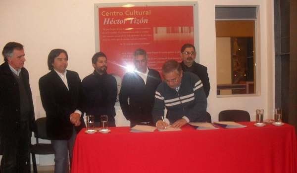 Representantes del sello discográfico firmaron un Convenio con el intendente capitalino Raúl Jorge y el titular del Concejo Deliberante, Juan Carlos Abud Robles.